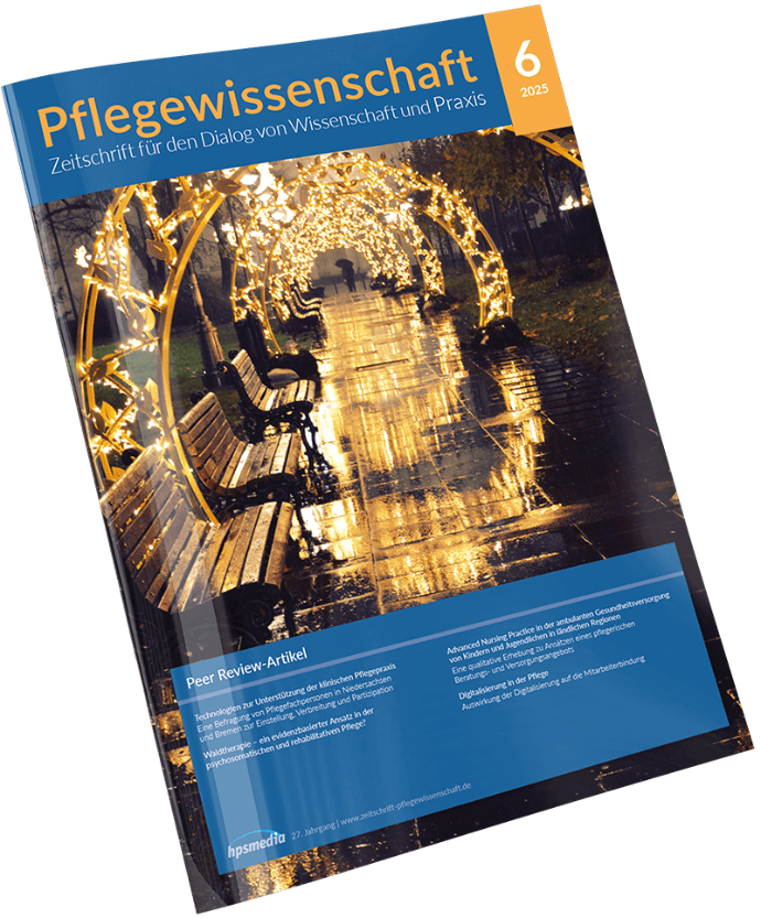 Pflegewissenschaft ist die internationale, peer-reviewte Fachzeitschrift für alle Berufe der Pflege. Sie möchte einen Beitrag für Wissenschaft, Forschung und Praxis des Pflegeberufes leisten sowie Praktikern konkrete Hilfen und Anregungen geben. Sie veröffentlicht Beiträge über alle Aspekte der Gesundheits- und Krankenpflege sowie der Disziplinen des Gesundheitswesens: Originalarbeiten, Grundsatzartikel, Forschungsberichte sowie Artikel, die eine wissenschaftliche Basis haben.